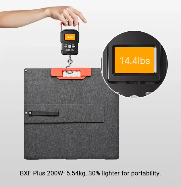 BXF-Plus portable solar panels are 30% lighter thanks to PVF and fiberglass materials. With a foldable design, high durability, and strong performance even in shaded or off-grid conditions, they’re ideal for RVs, camping, and mobile solar setups.