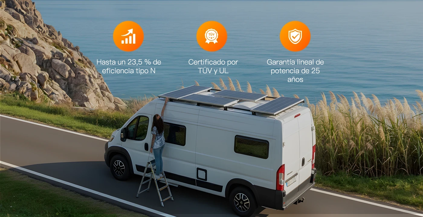 Por supuesto. Es una de nuestras opciones más populares para sistemas RV aislados de la red. Su alta densidad de potencia le permite aprovechar al máximo el espacio limitado del techo y, al mismo tiempo, proporcionar suficiente energía para alimentar equipos como frigoríficos y luces.