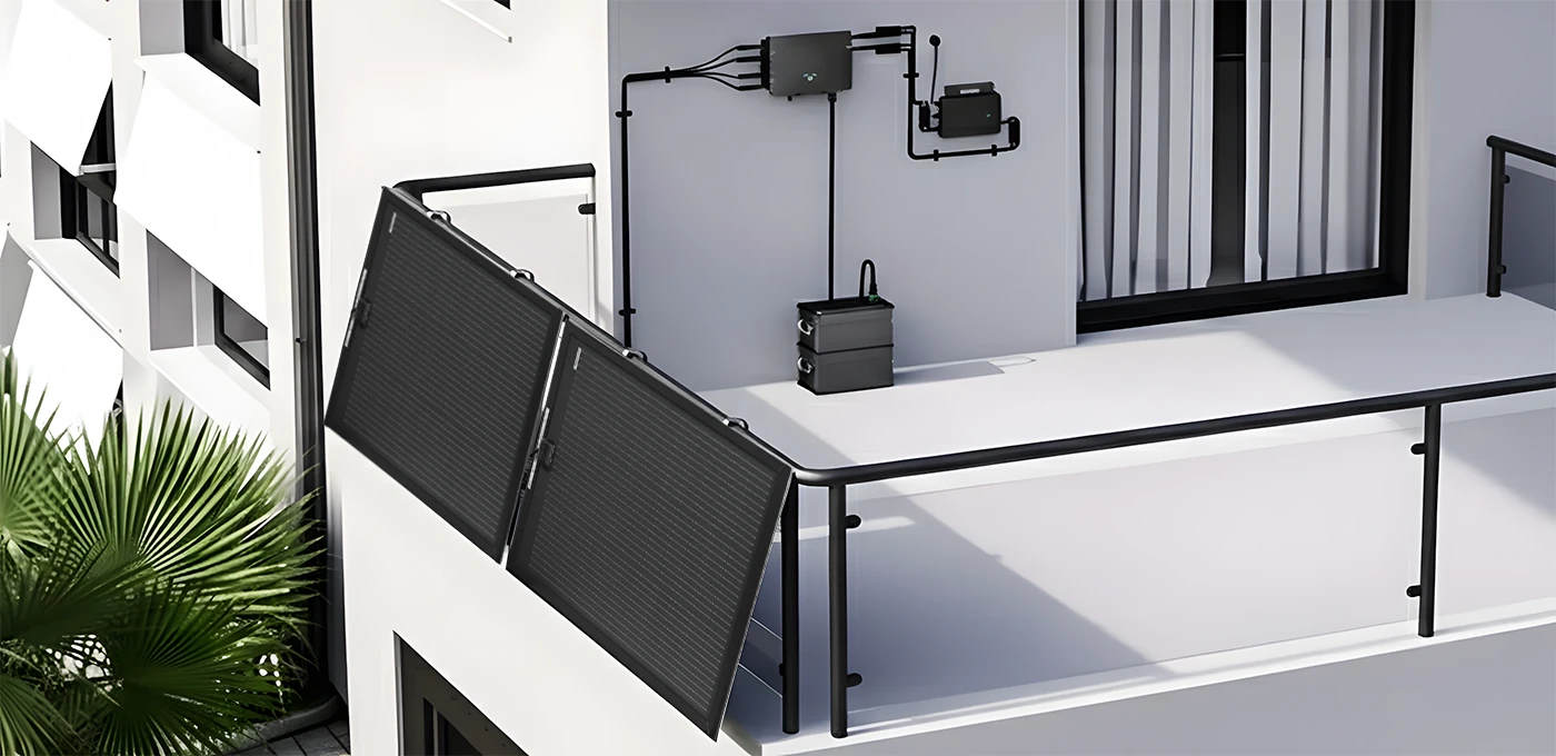 Balcony plug-in solar is defined as a compact 400–1200W system that connects to a standard 120V wall outlet. With an integrated microinverter, it converts DC power to AC to directly support household loads.